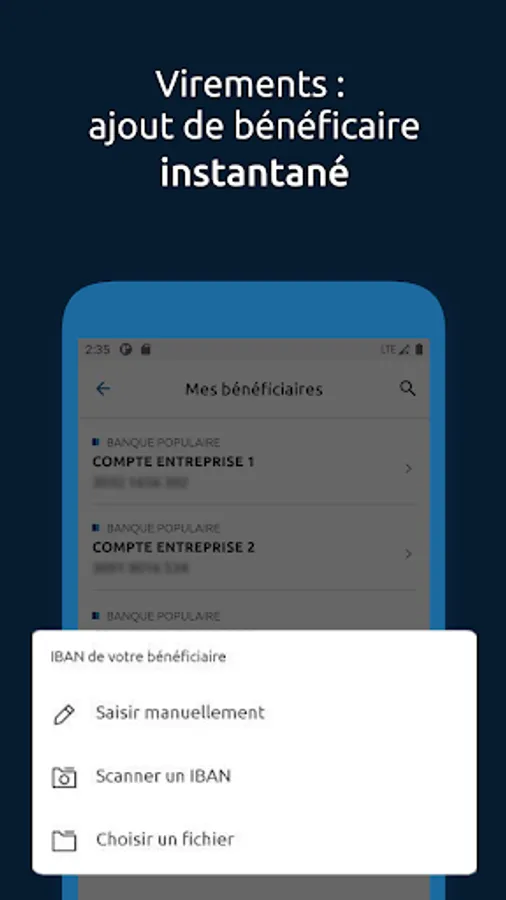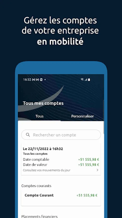 - Consult your accounts in a secure way thanks to your password or your fingerprint