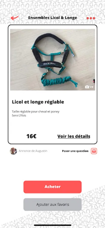 We have intentionally separated the ads for Saddles and Equines. The principle is slightly different, it is a simple connection. You cannot buy the saddle or the equine for which you have a crush directly on our site because it requires a test to be perfectly sure that there is a good match.