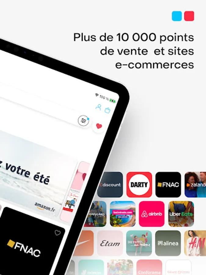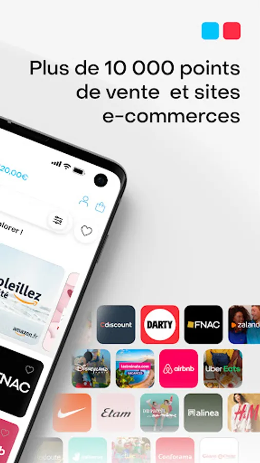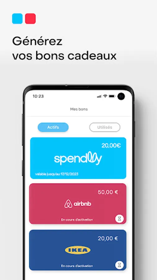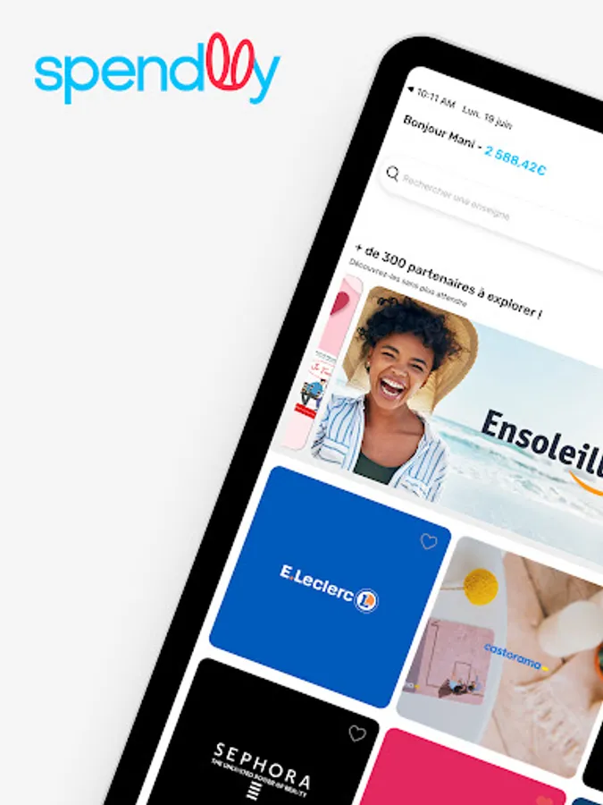 Thanks to Spendlly, access an online store of gift vouchers that can be used in more than 10,000 points of sale and e-commerce sites (FNAC / Amazon / Darty / Decathlon / Zalando / Leclerc / Maisons du monde / Galerie Lafayette / Carrefour / Sephora and many others !).