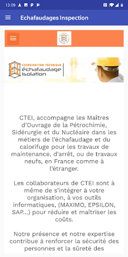 CTEI, the company that publishes this application, accompanies the Project Owners of Petrochemicals, Iron and Steel Industry in the scaffolding and insulation business for maintenance, shutdown or new works in France. as abroad.