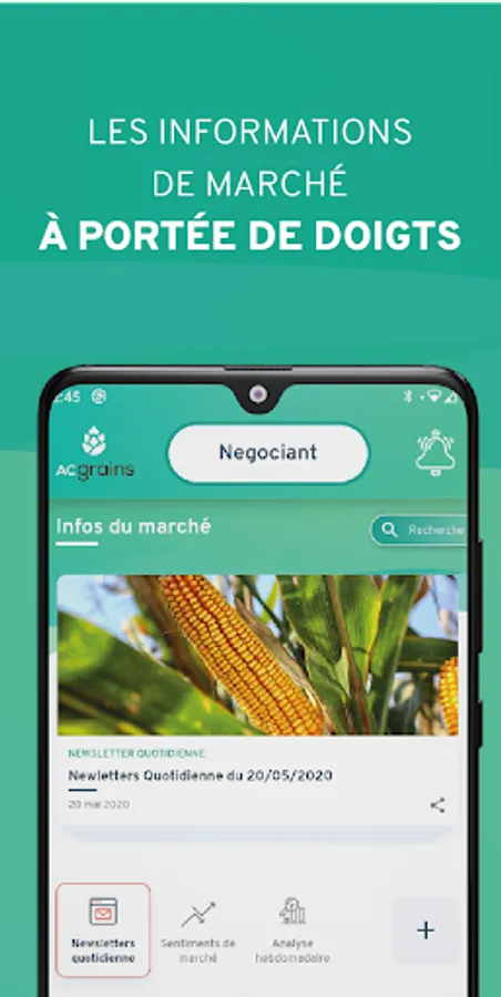 ACGRAINS is the market tool invented and offered by your trader which allows you to take control of the marketing of your grains in a simple and modern way.