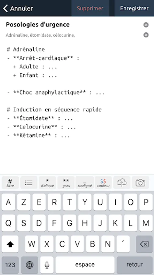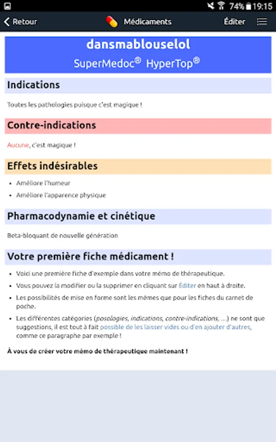 - Build your therapeutic memo: add contraindications, dosages, specific administration methods, service protocols, ...