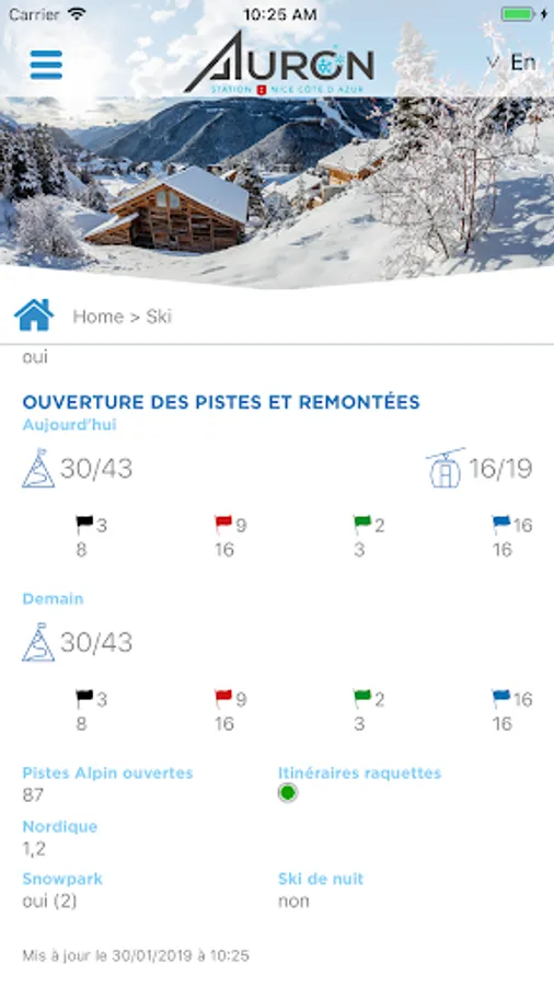 Discover the whole offer of your Auron ski resort, Nice Côte d'Azur (French Riviera), its ski area with its 135 km of slopes, its webcams, all the practical information for your stay in the mountains: accommodation, ski passes, equipment rental , activities, its shops, the richness of its heritage, its entertainment program and events of the season.