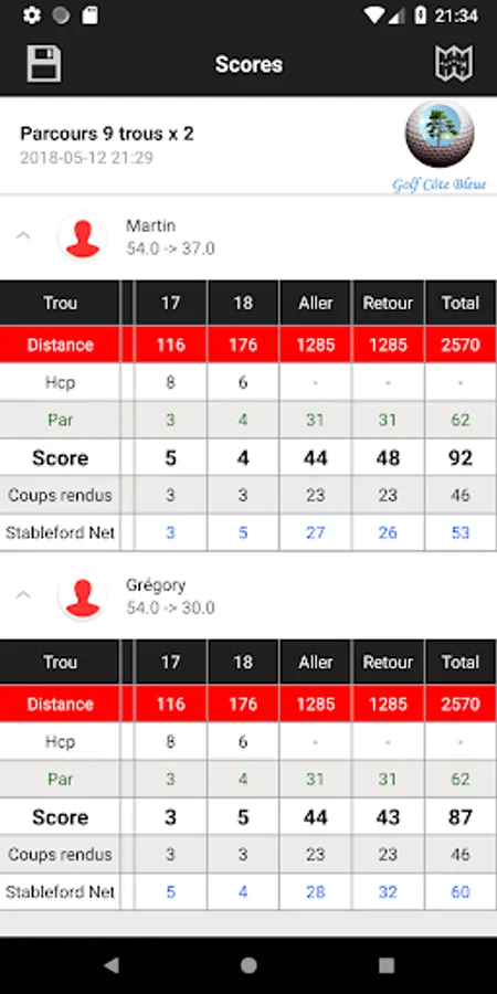 Just enter your number of strokes on each hole, rendered shots and net Stableford score is calculated in real time.