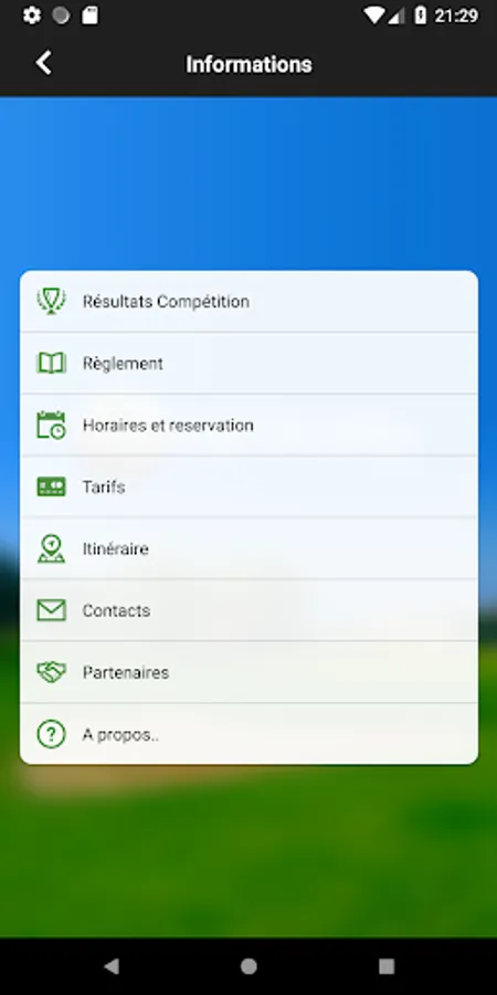 Designed with a permanent concern of ergonomics, this application focuses on the essentials. A score card, GPS, map the holes 2D, weather and club information.