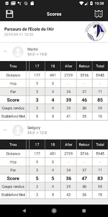 Just enter your number of strokes on each hole, rendered shots and net Stableford score is calculated in real time.