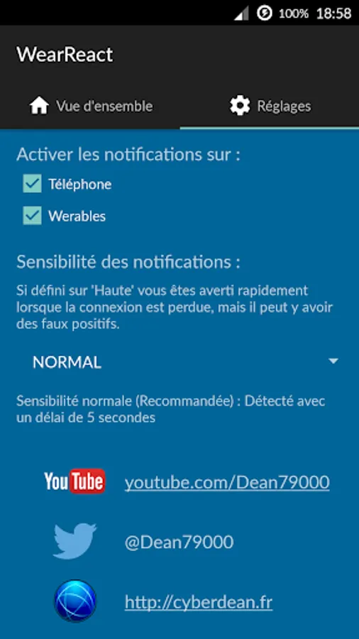 To never forget your smartphone or Android Wear watch, WearReact notify you when one of your devices is too far from you, in all circumstances.