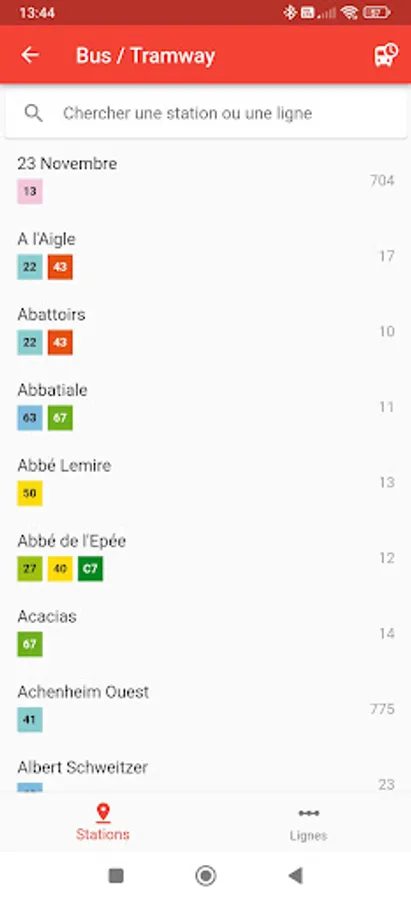 At a glance, visualize on the same map the nearest station, all modes of transport combined (tramway and bus).