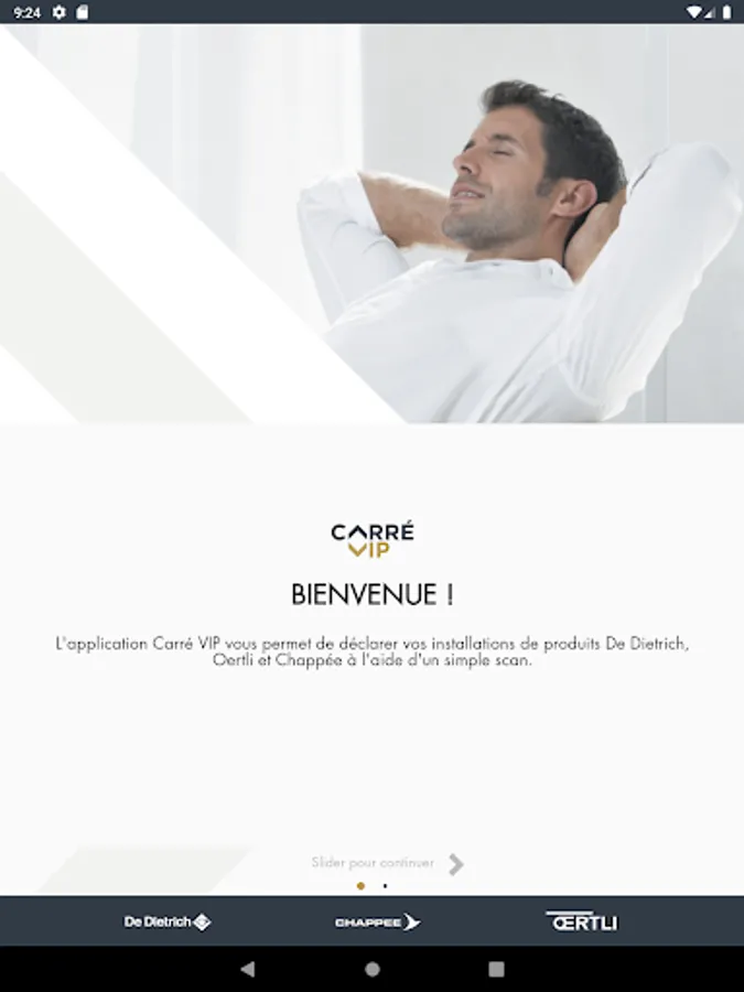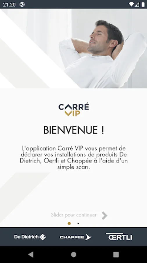 Free and exclusive application for installers of the Carré VIP program bringing together the brands of the BDR group Thermea Chappée, De Dietrich and Oertli.