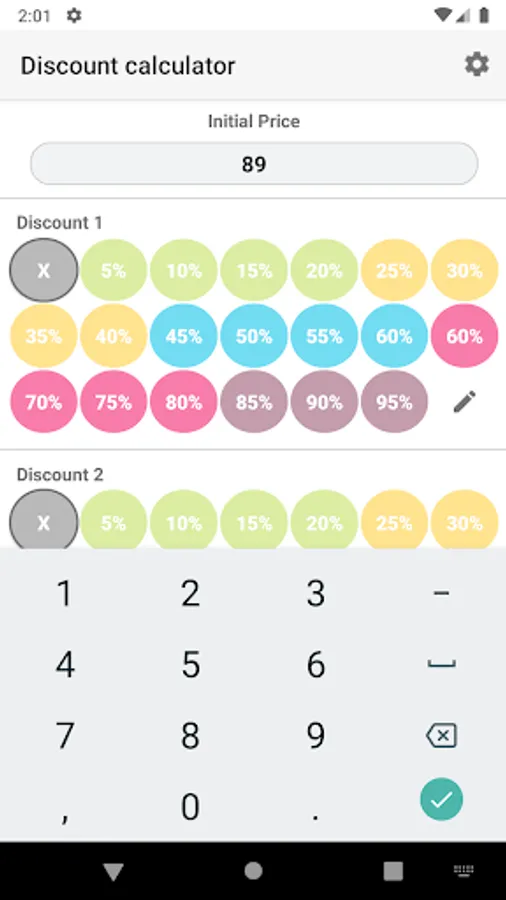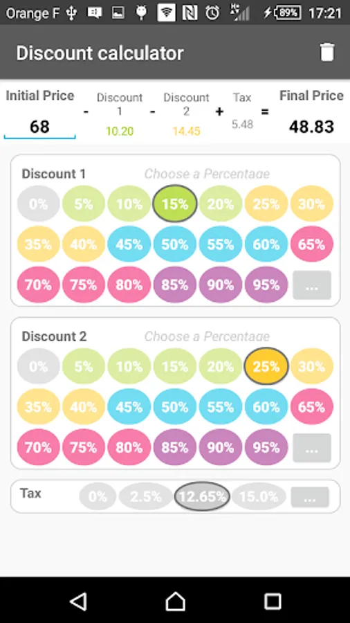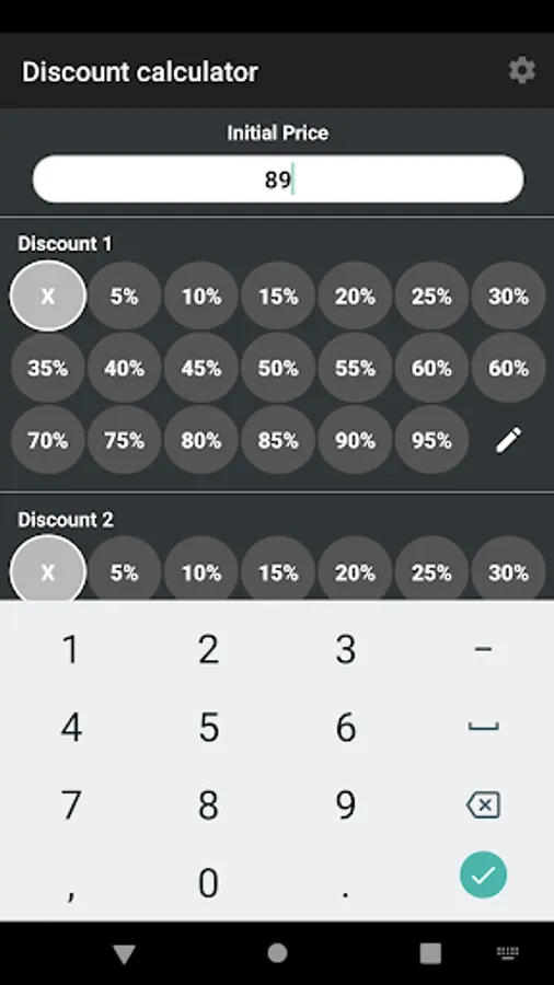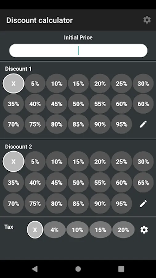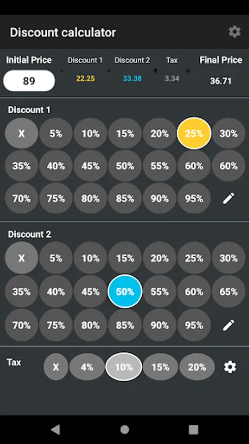The features offered by the app are very practical. The user can add up to two discounts as well as taxes to get the final price. Note that the interface is very easy to use. There is nothing easier!