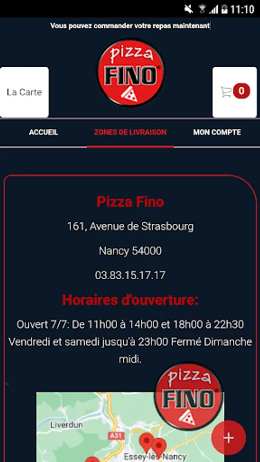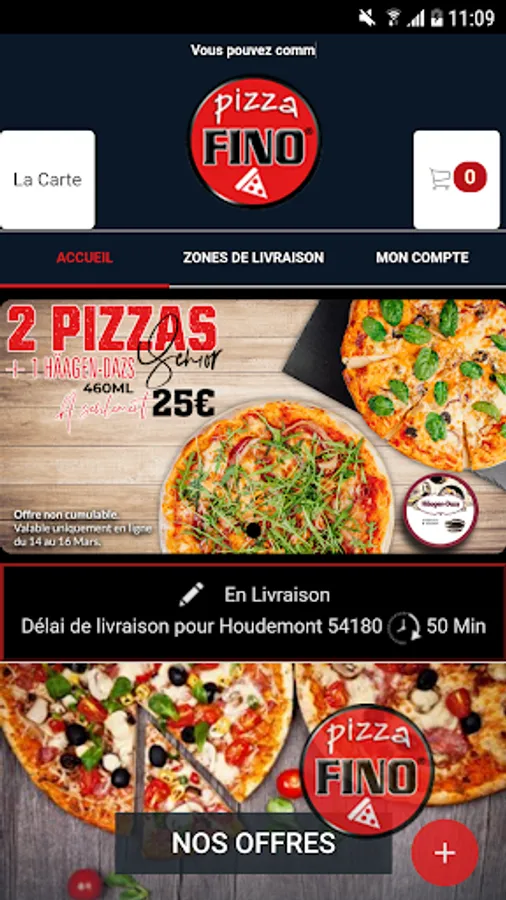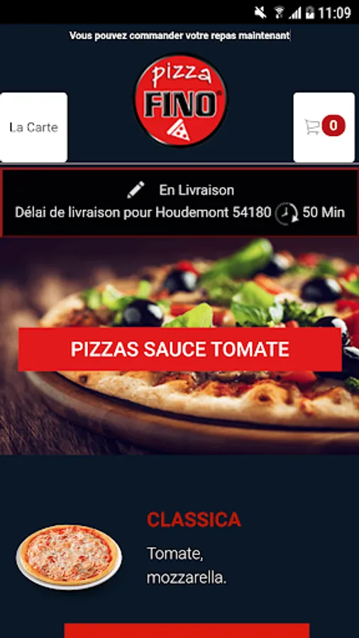 The Pizza Fino Android app allows you to order online or by phone through your app. You can consult our menu and choose your products.