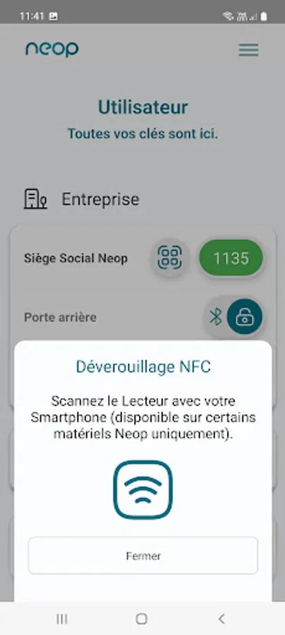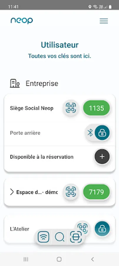 The Neop application simplifies requests for access to shared premises. Hand over the keys in seconds. The Neop app gives you the list of spaces for which you have access rights. Each code is personal and ephemeral.