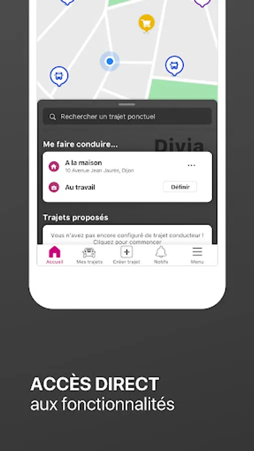 Are you a driver? Submit your trip on the Divia Covoit' app to find passengers who want to take the same trip as you.