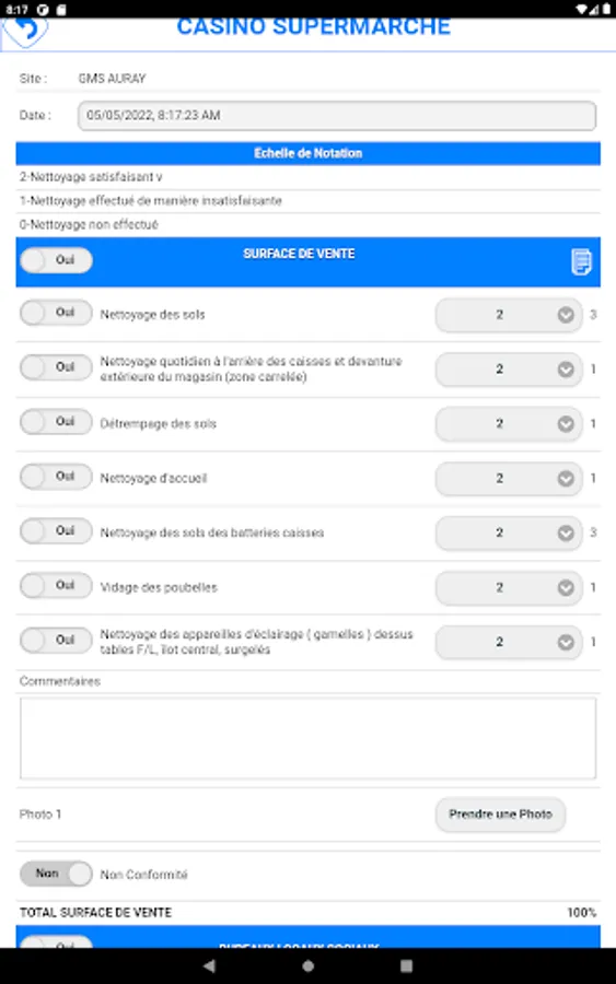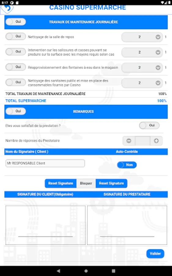 Our software for controlling cleaning and multi-service services allows you to carry out quality controls on your customer sites from your Android tablets, to make these quality controls available to your customers on the web and to control the evolution of the quality of your services to your customers.