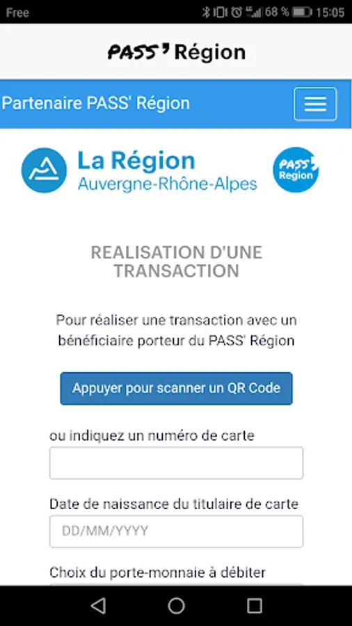 Application Partner PASS 'area allows, after login with the username and password partner, to make transactions with beneficiaries who present their PASS' Region (via their card or mobile).