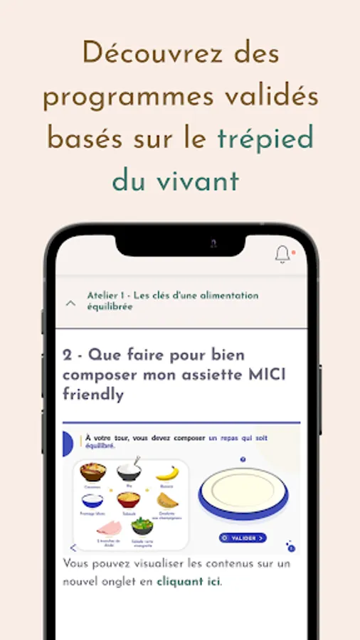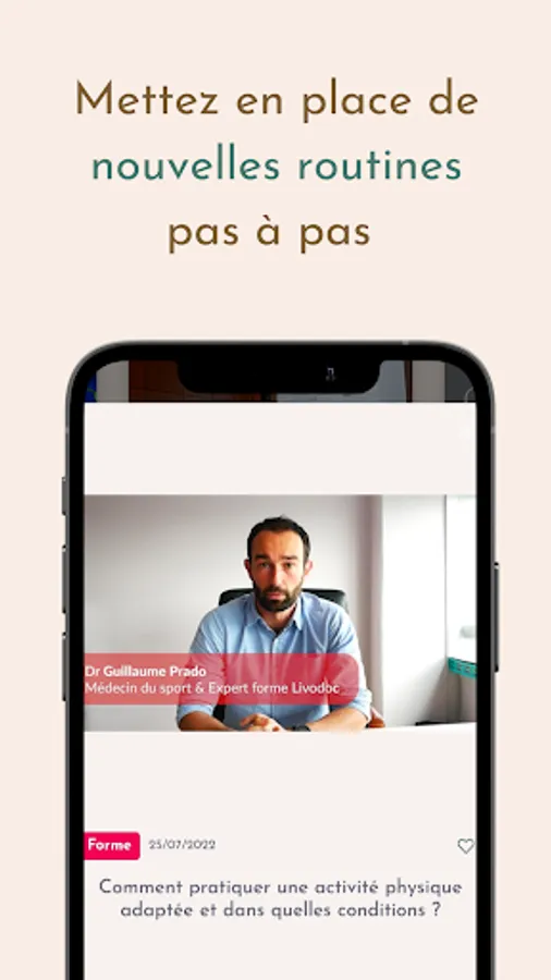 With the DocLivi application, access your personalized course 24 hours a day, 7 days a week and benefit from advice on how to balance your living tripod in all circumstances