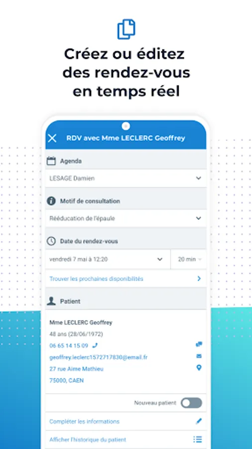 - Create patient cases in Doctolib Team and collaborate in real time with the care team