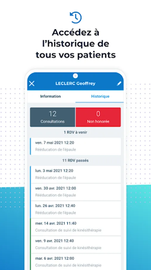 And in the event of loss or theft of your mobile, you can be sure that your data and that of your patients remain safe: thanks to Touch ID and Face ID, you are the only person who can access your agenda.