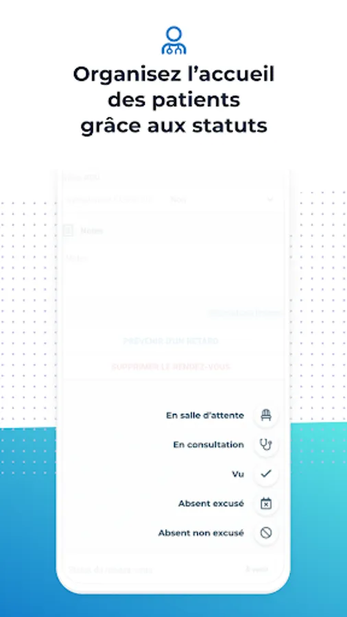 - Improve the management of your waiting room and quickly notify your patients in case of delay
