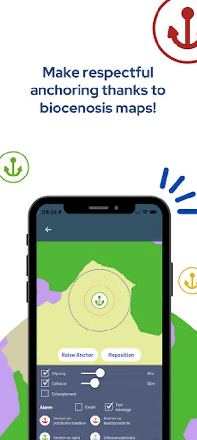 - Visualize precisely the seabed (sand, Posidonia, coralligenous, rock)