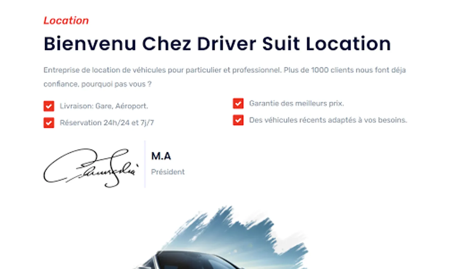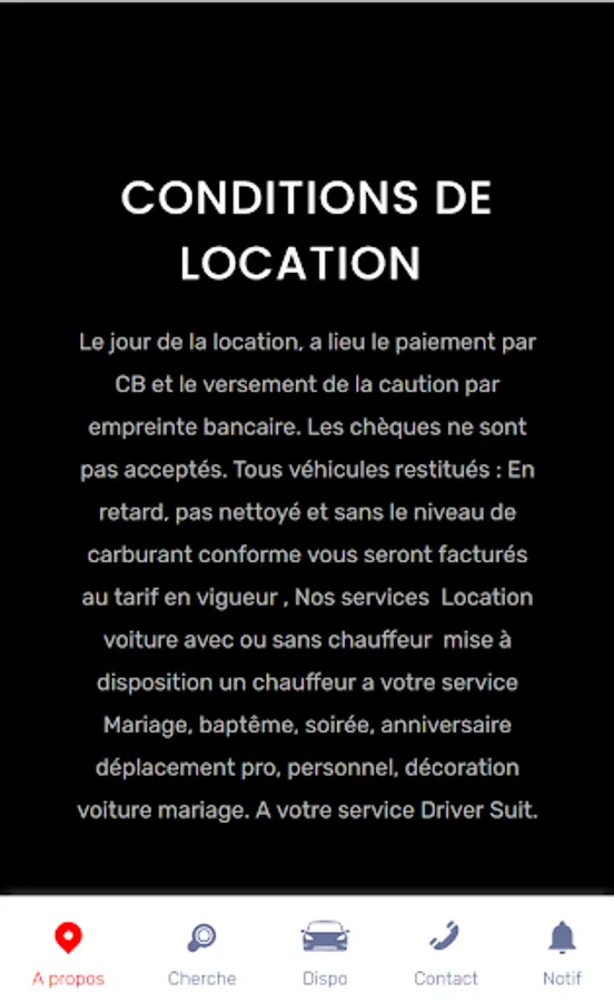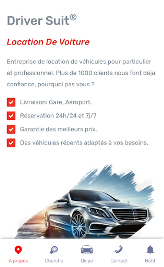 We are a car rental agency for individuals and professionals, based in Île-de-France, this application will allow you to choose and reserve your vehicle online, see the availability of cars, and will allow you to contact us at any time.