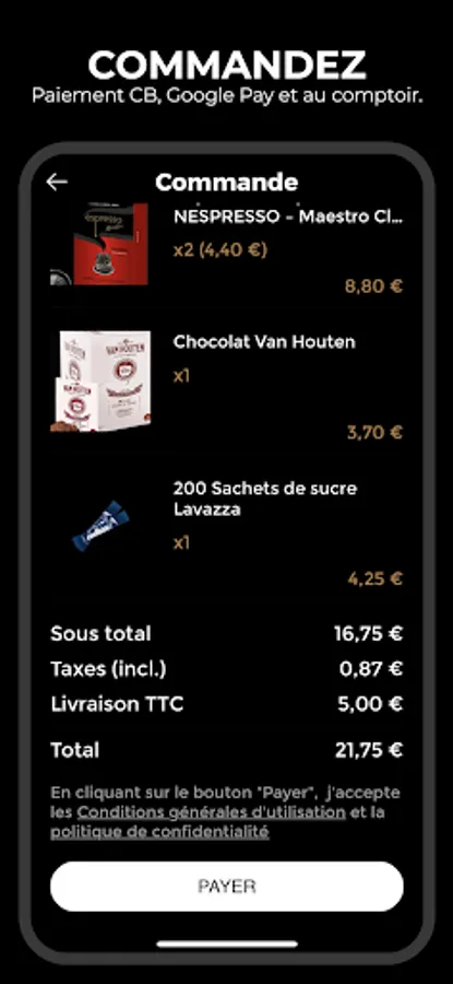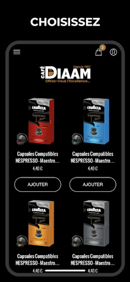 With the Café DIAAM Pro application, your purchases are simplified until delivery to your home, in 2 times 3 clicks!