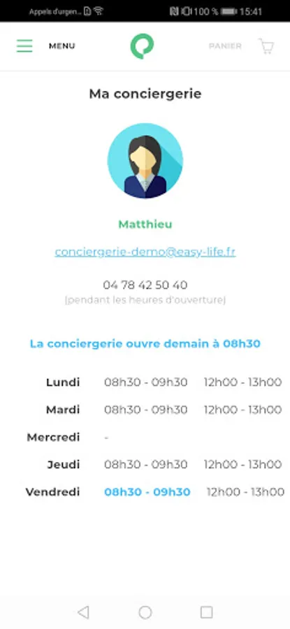 Consult the hours and contact information of your concierge.
