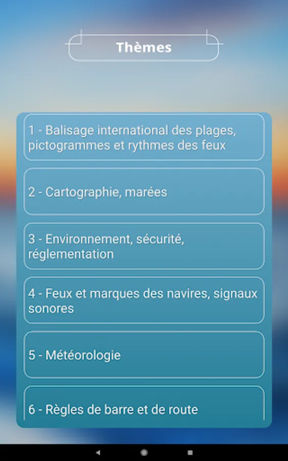 Regular updates are carried out to adapt to the evolution of the program of the examination of the coastal license. If an update occurs, you will be notified.