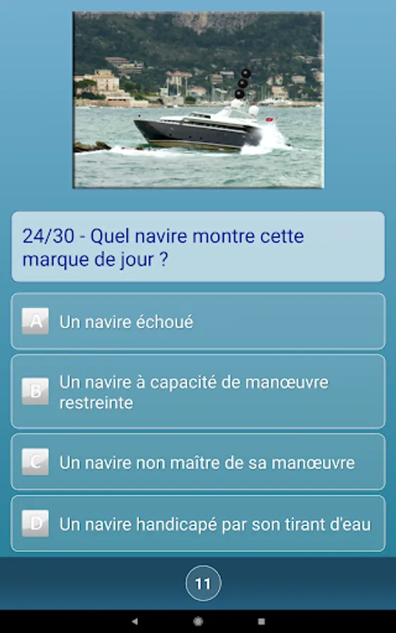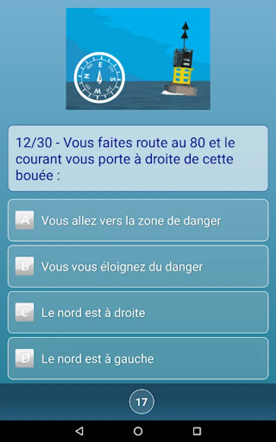 We draw your attention to the fact that this application is only an aid to allow you to train for the boat license exam.