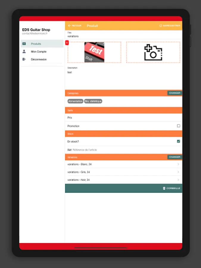 Application for traders allowing the management of their products for sale on "I buy from Lunéville to Baccarat"