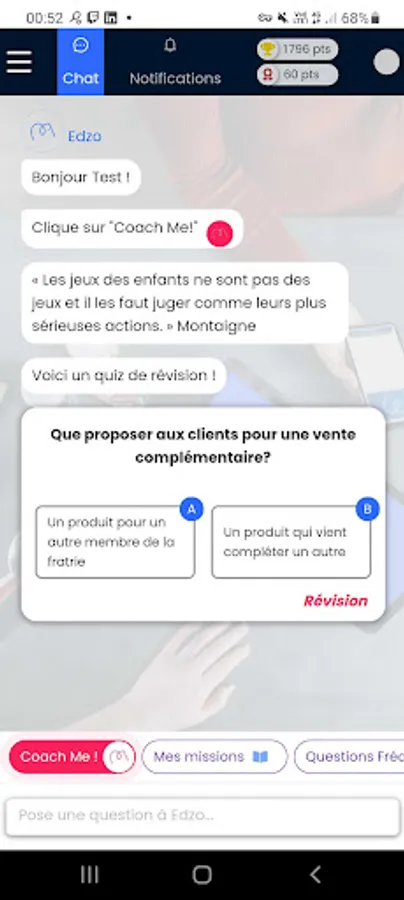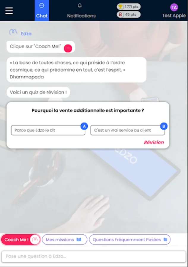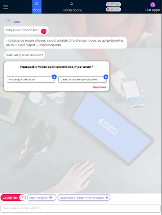 In those sessions, we review our client sales process and workflow. Interesting contents are added into the app. We organize this work with the sales managers of our client company.