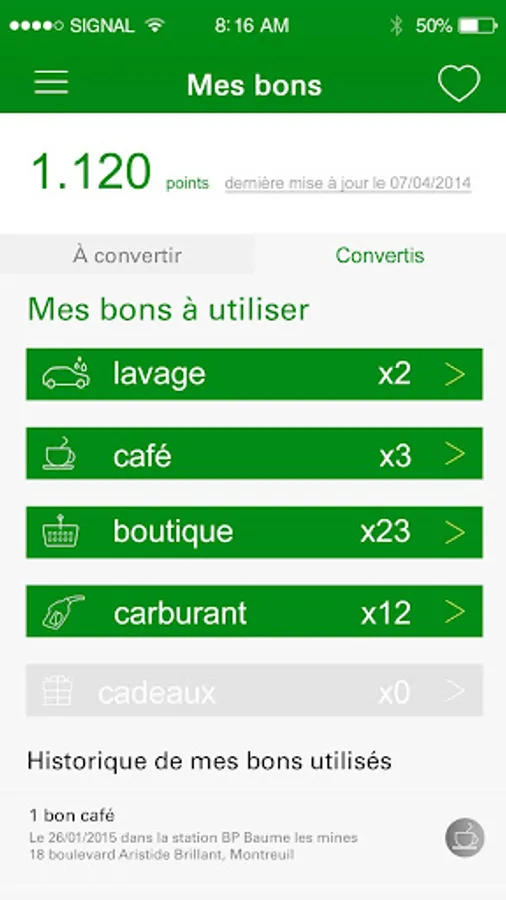 • Check your loyalty points and convert them into vouchers that can be directly present in hand