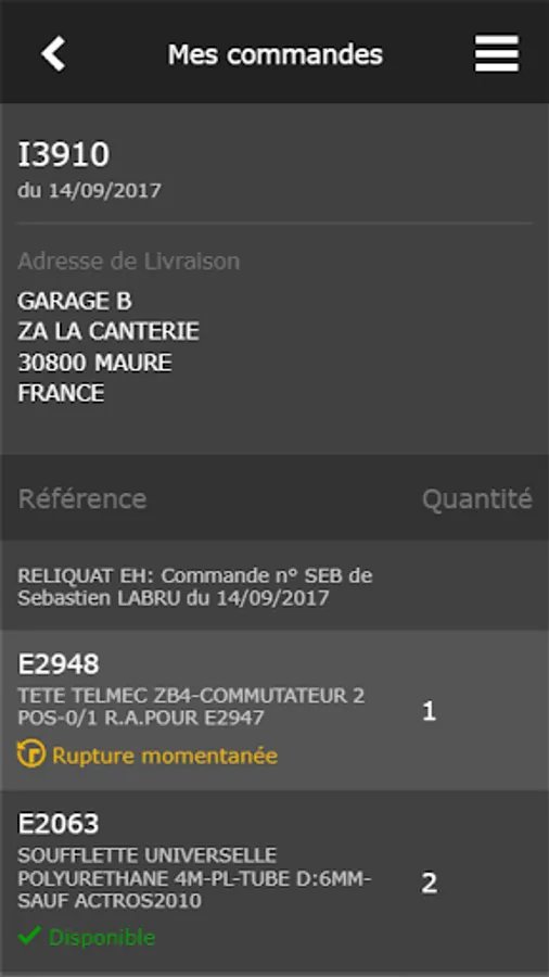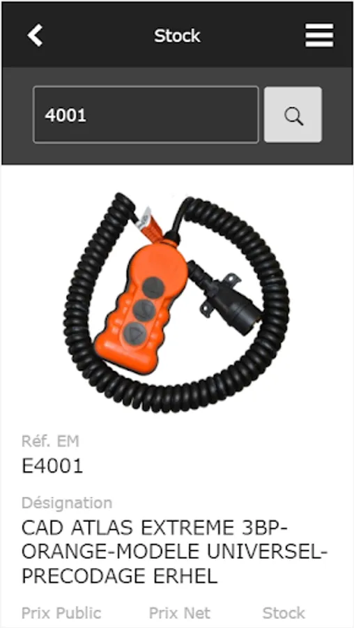 - The state of the stock of a product by its EM reference or its OEM reference.
