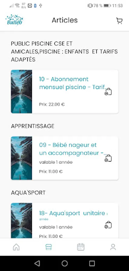 The “Bulléo” application allows you to reserve activity slots, buy tickets (single or packs) and recharge your access card, without having to travel.