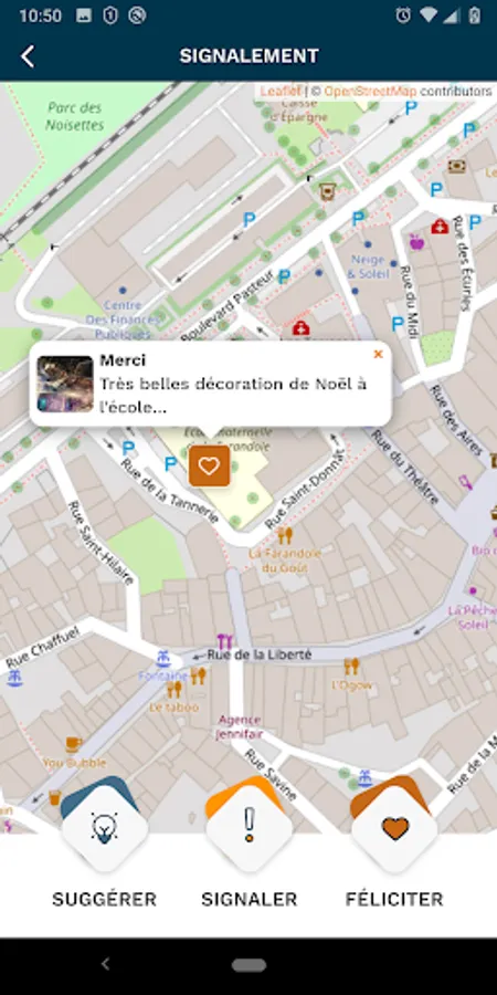The application also facilitates exchanges between you and the municipality. In particular, it allows you to report malfunctions or suggestions on public roads but also to respond to surveys.