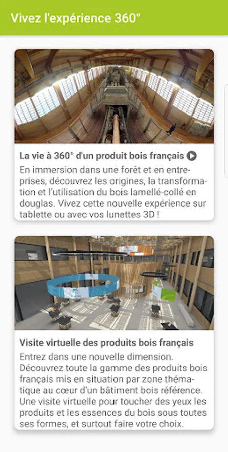 Visit the virtual home of the French Bois, the showroom for all French wood products. During your virtual tour, go as close a materials library of interactive French wood products. Find all the offers that you can implement in your projects of construction and development.