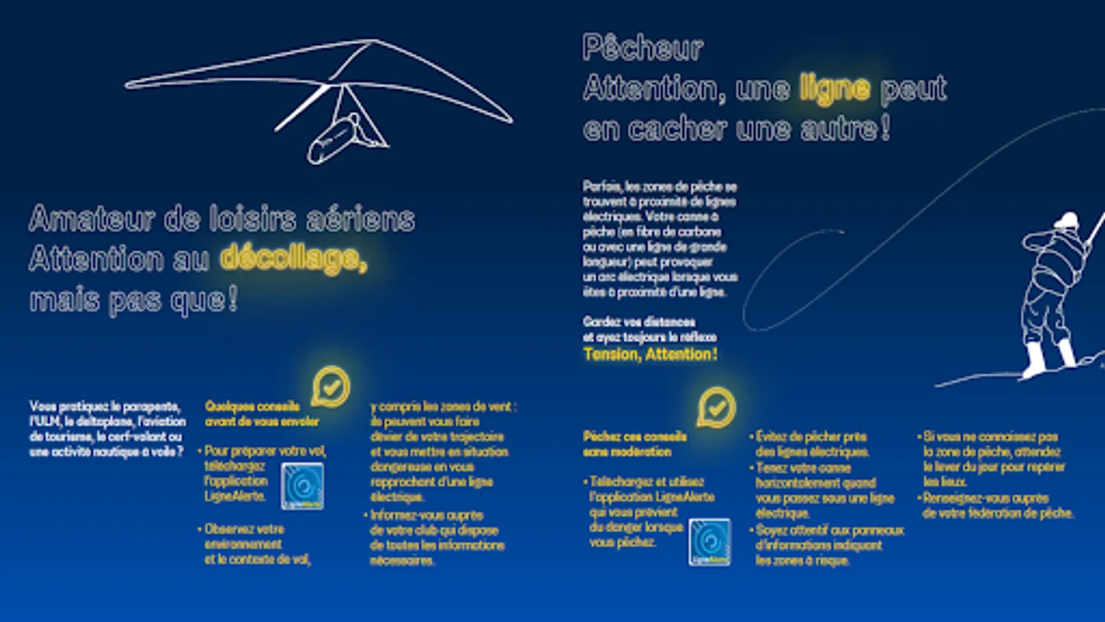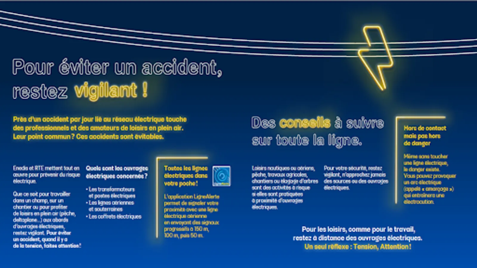 LigneAlerte uses your GPS location and overhead power grid mapping to alert you when you are approaching a power line.