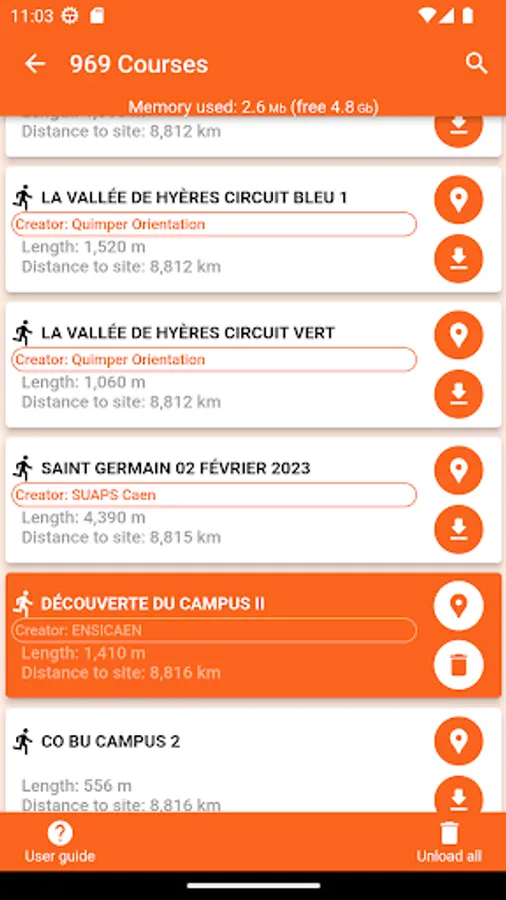 Vikazimut comes in two modes. A sport mode where the orienteer is not helped for his position and a walk mode where the orienteer is positioned on the map in real time. In walk mode, some routes display cultural information at checkpoint.