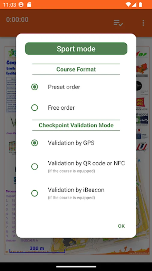 The orienteer uses the application to find the way using the map and validates the passage at the checkpoints manually with the QR code or NFC readers or automatically with the GPS position. At the end of the course, the application displays some statistics: the total time, the split times and the track on the map.
