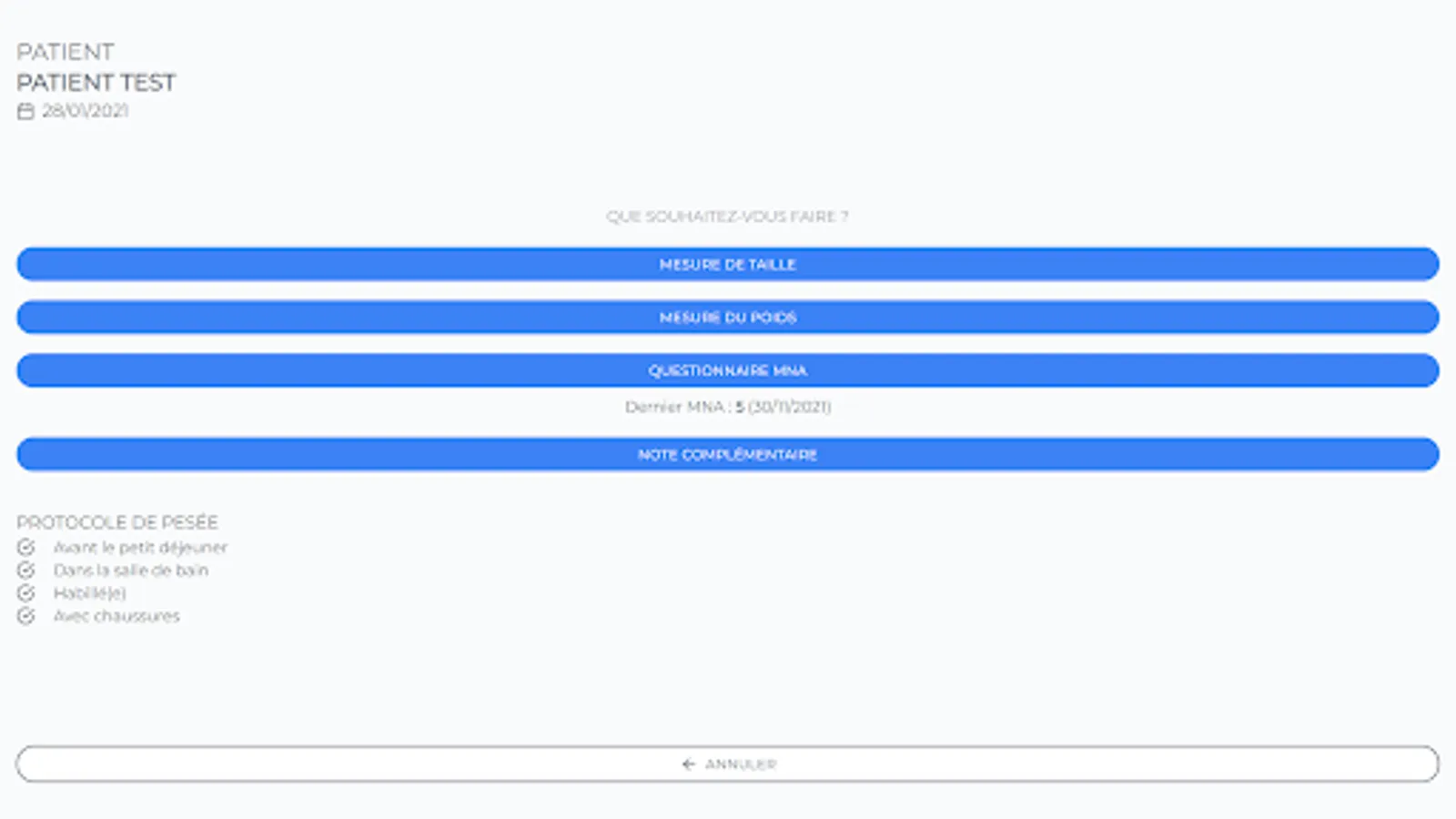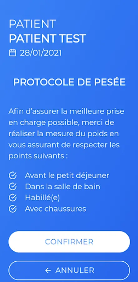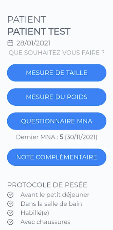 After a risk assessment, the Social Life Assistant (AVS) and Home Help (AD) will monitor the weight of the person who has agreed to integrate the system using connected tools, tablet, connected scale, weighing pad, etc.