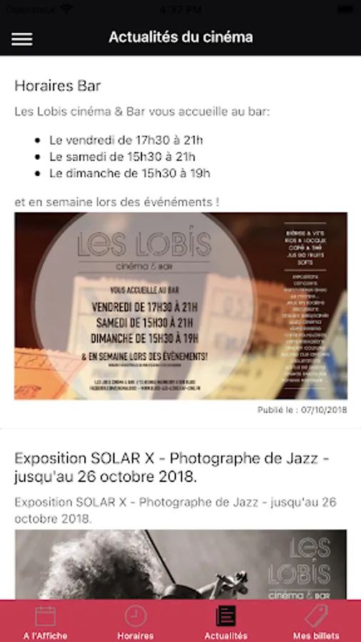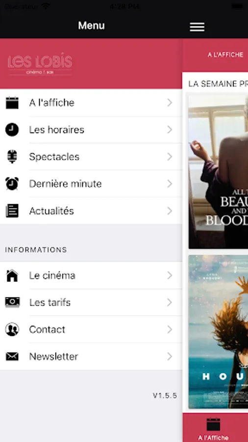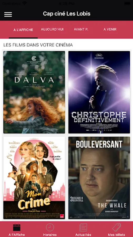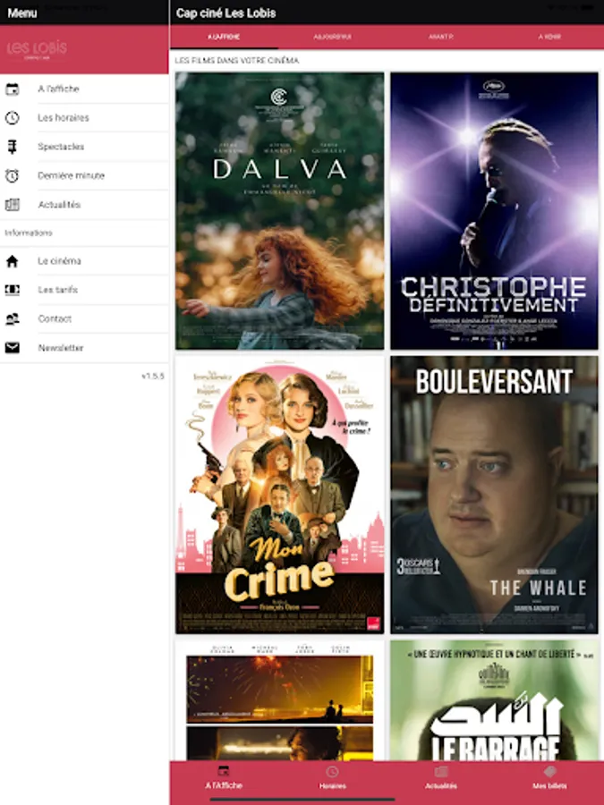 Thanks to the Cap Ciné Les Lobis application, follow the news of your cinema in Blois (41000) at any time: