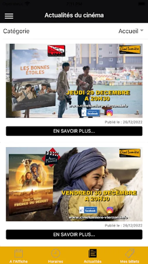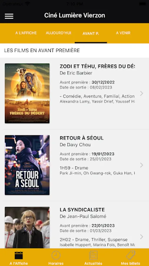 Thanks to the Ciné Lumière application, follow the news of your cinema in Vierzon (18100) at any time: