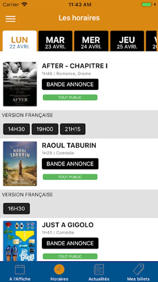 Thanks to the application Clap Ciné Leucate, follow constantly up-to-date news about your cinema in Port-Leucate (11370):