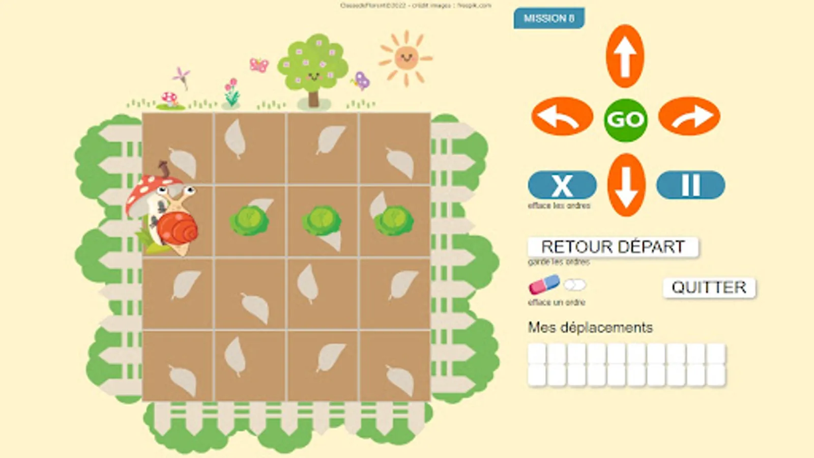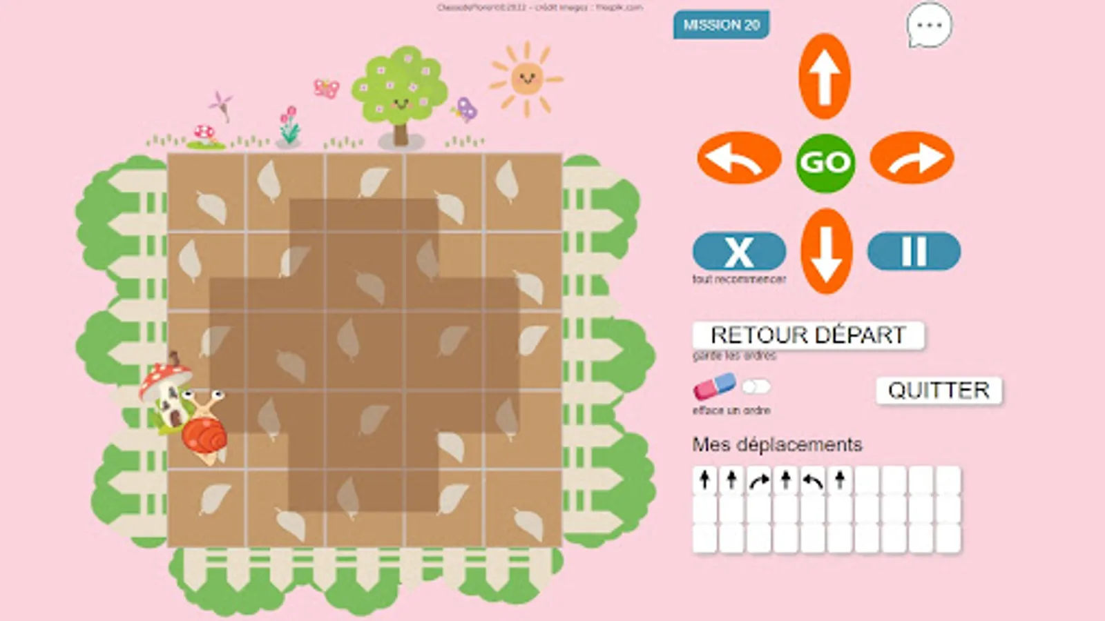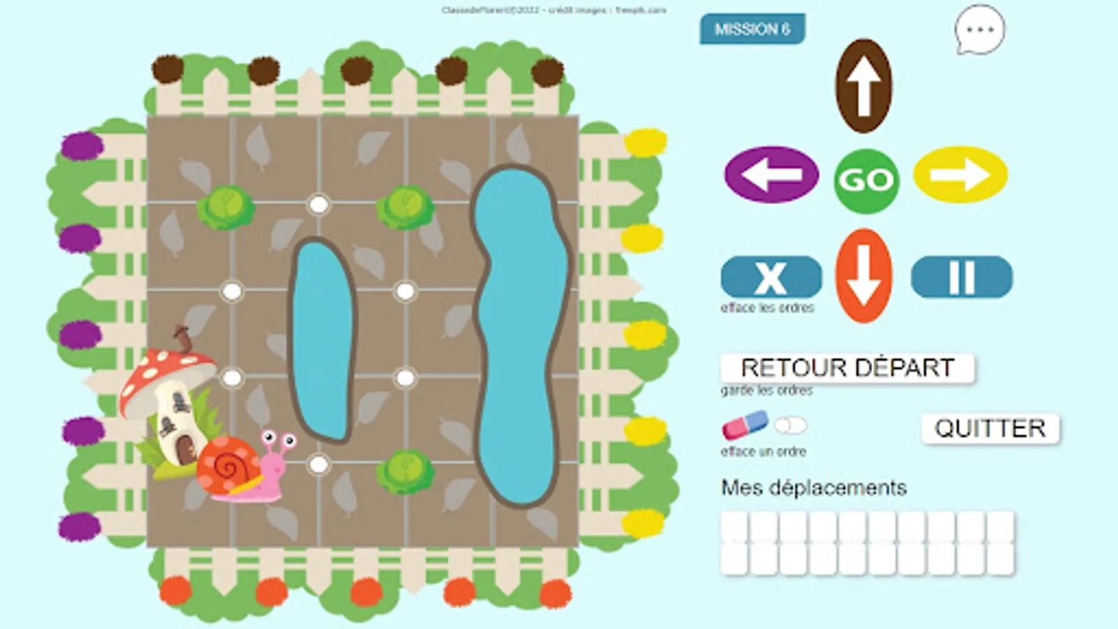 Escarbot moves relatively like the Bluebot or the Beebot: it advances according to its orientation.