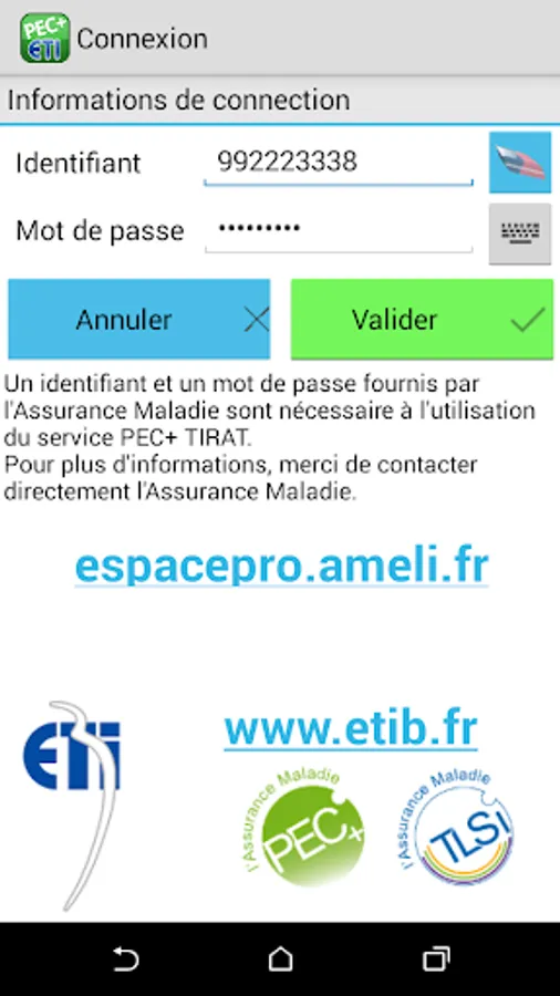 Peceol online queries the CPAM, MSA and other insurance organizations via the mobile data connection or WiFi.