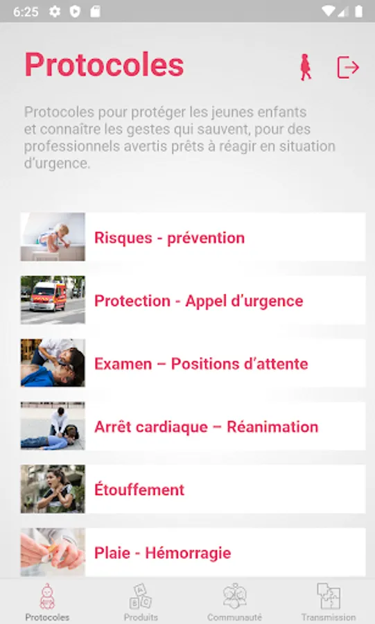 Gives you access to prevention and first aid protocols for infants, children and adults.