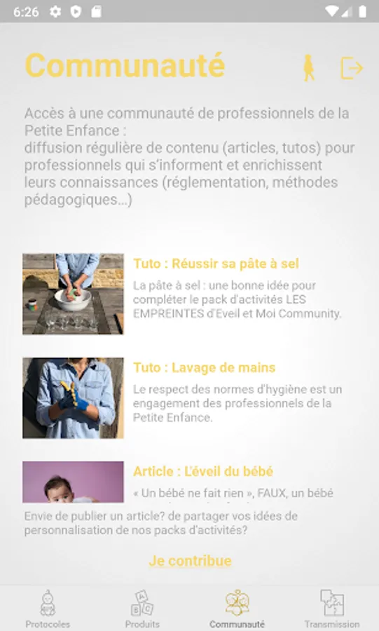 o Access to a community of early childhood professionals: regular distribution of content (articles, tutorials) for professionals who learn and enrich their knowledge (regulations, teaching methods, etc.)