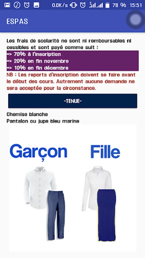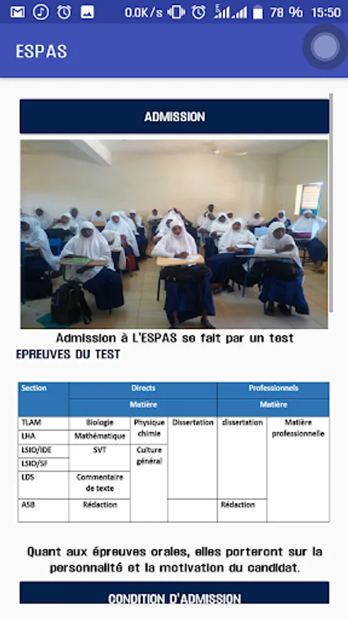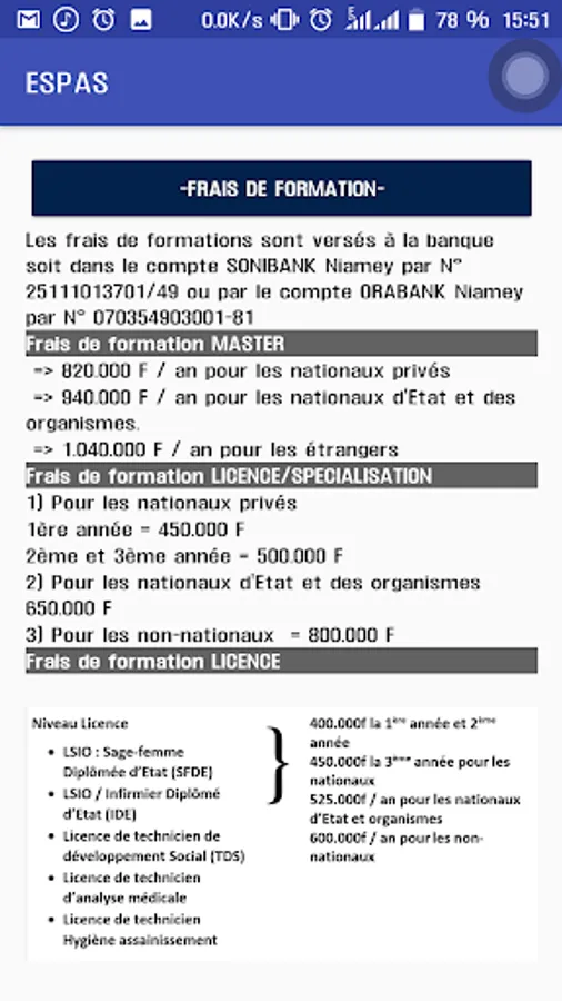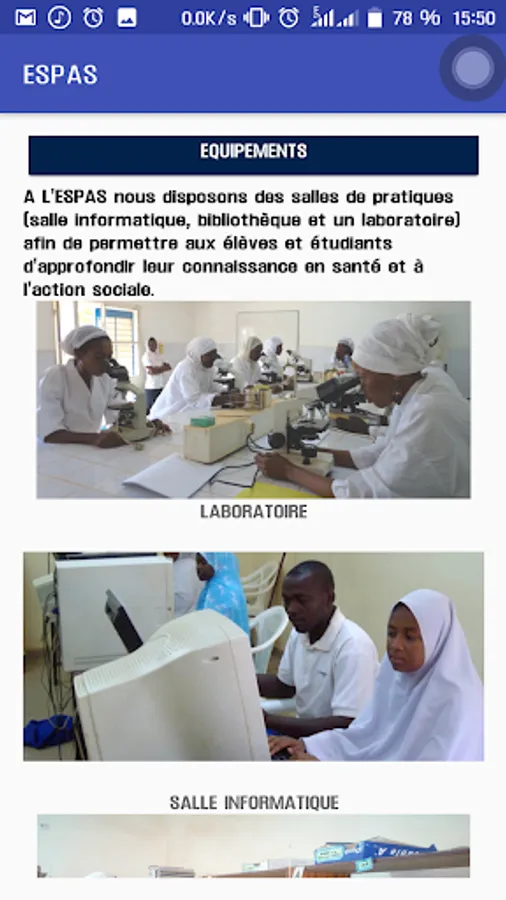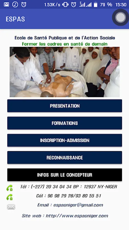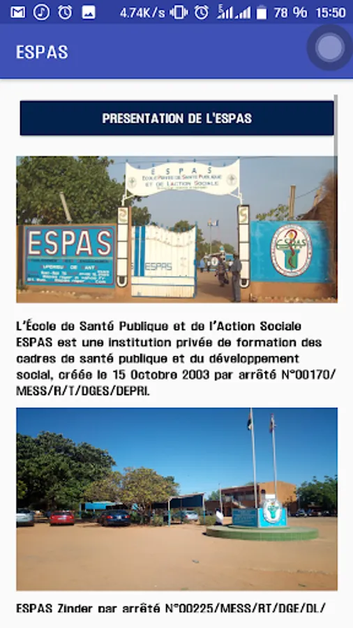 The ESPAS Niger is also presented to Zinder which you will have all the information about all its two schools in this mobile application.