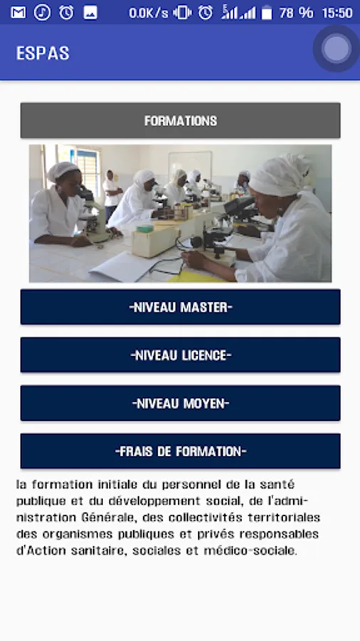 With this application ESPAS, no need to go to school to learn. Download this app to have all the information on the Higher School of Public Health and Social Action ESPAS.