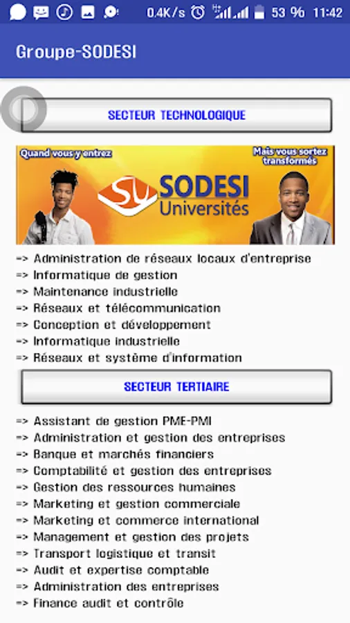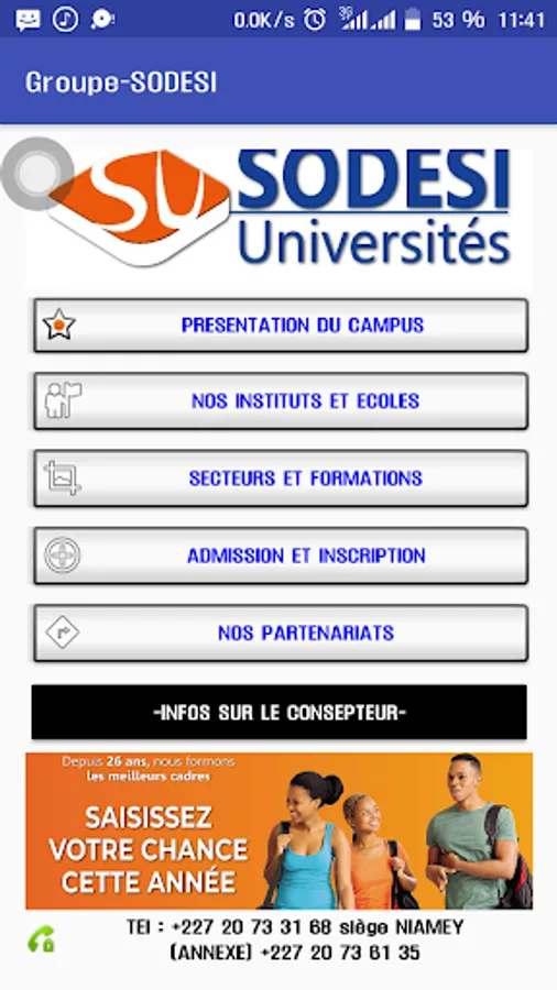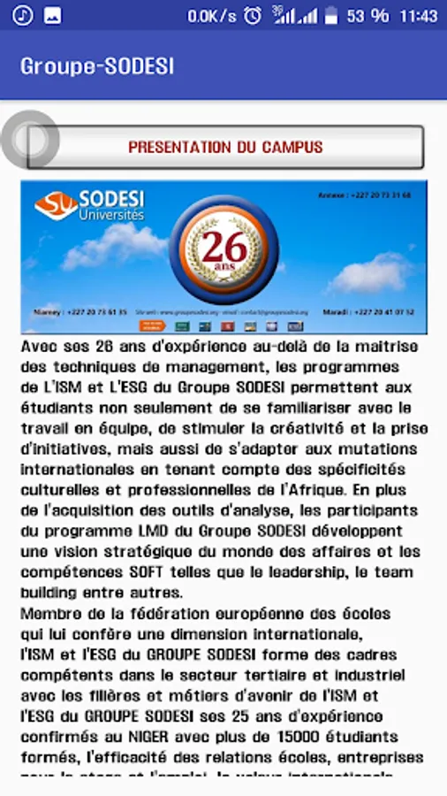 Download this application to learn about the University (Sodesi Group) of Niger. Remember that SODESI Group is located in Niamey and Maradi